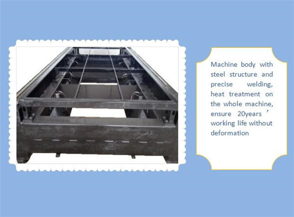 1. Mūsų mašinos korpusas su 8 mm plieno konstrukcija, 600 ℃ terminiu apdorojimu, tikslus suvirinimas, kad užtikrintume 20 metų naudojimą be deformacijų.