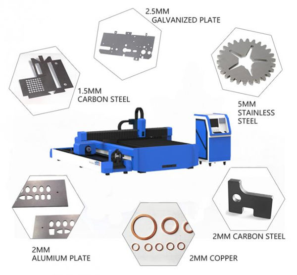 * Specially used for cutting 0.5-6mm carbon steel, 0.5-5mm stainless steel, galvanized steel, electrolytic zinc-coated steel sheet, silicon steel and other kinds of thin metal sheets.1000W can cut 3mm aluminum and 2mm copper.