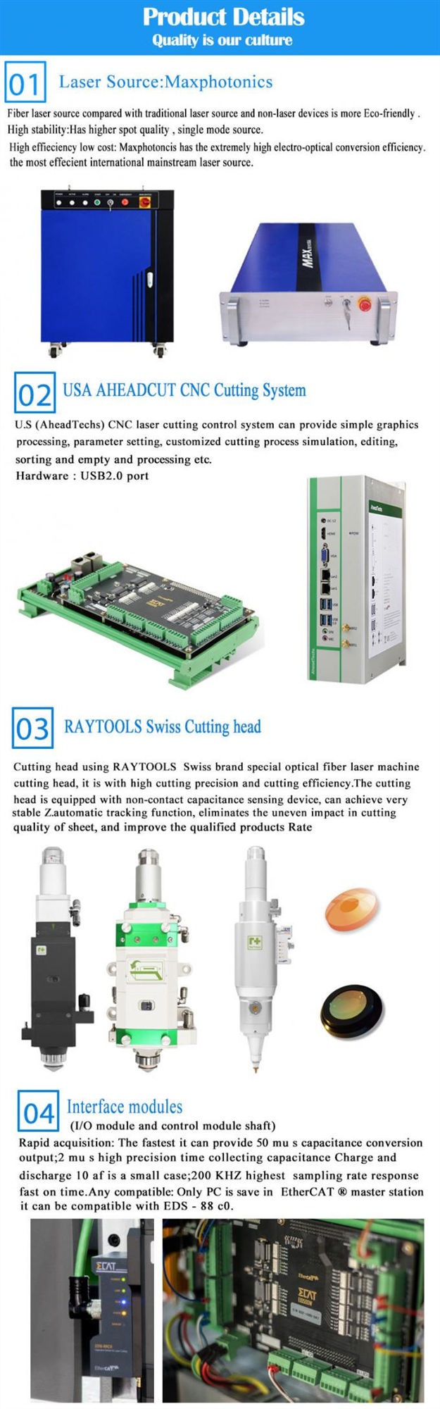 The machine is with long life using the imported fiber laser and high efficiency photoelectric conversion design.